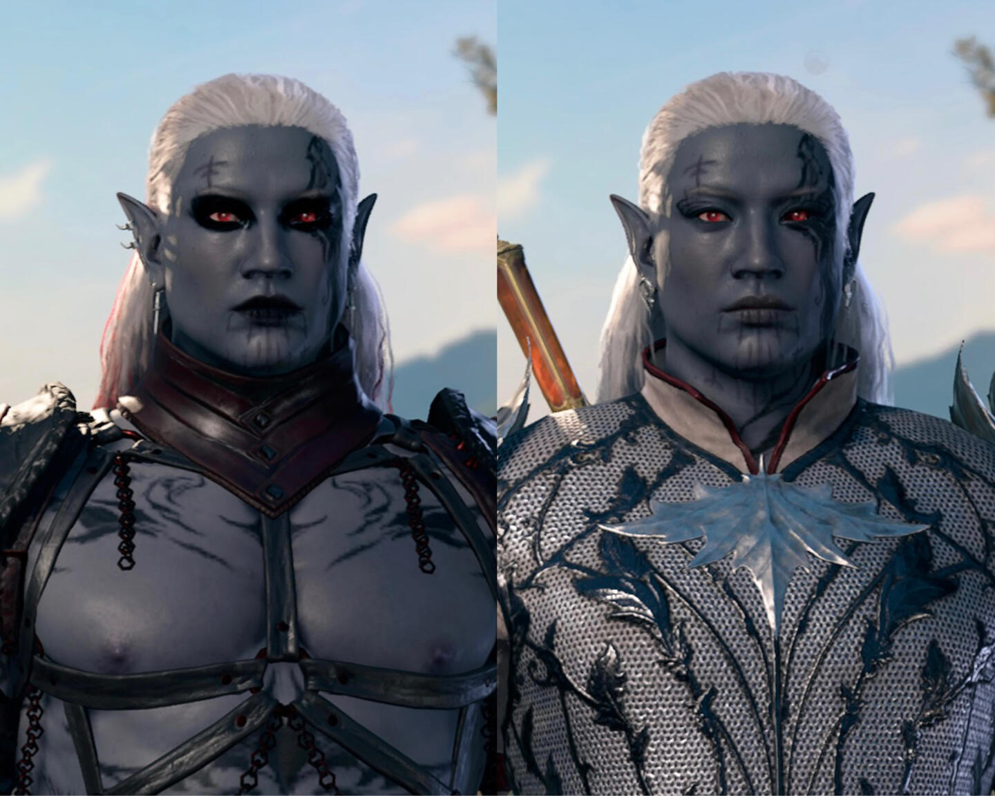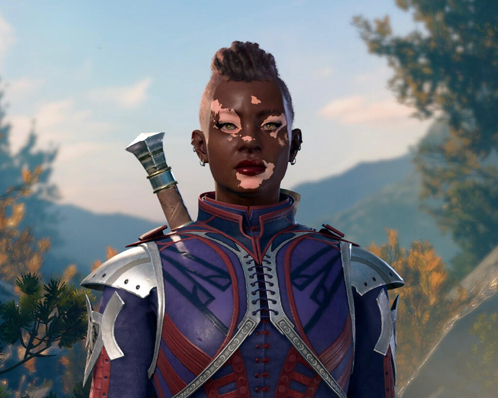 Azriel Duskraen, a drow warlock haunted by a Dark Urge;